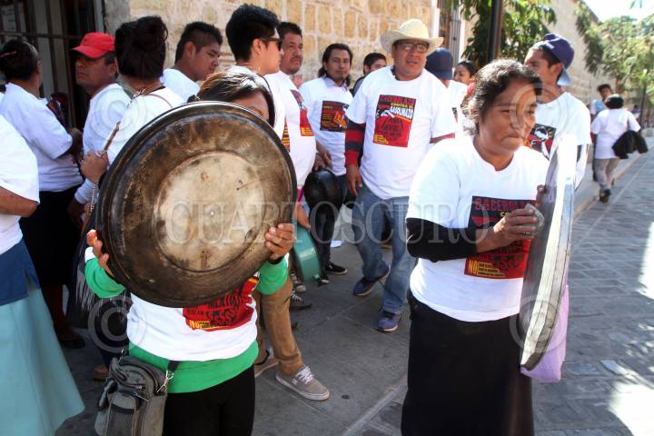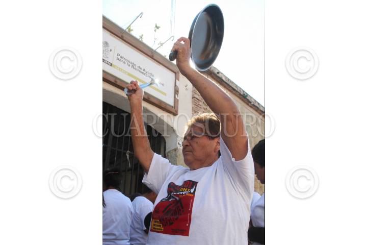 OAXACA, OAXACA, 02ENERO2017.- Militantes del Partido del Trabajo protestaron este lunes en las instalaciones del Servicio de Administración Tributaria (SAT) en el estado, esto por el incremento en el costo del combustible. Los manifestantes utilizaron cacerolas, sartenes, latas y demás artículos de metal para hacer ruido en la calle y así mostrar su descontento. FOTO: ARTURO PÉREZ ALFONSO / CUARTOSCURO.COM