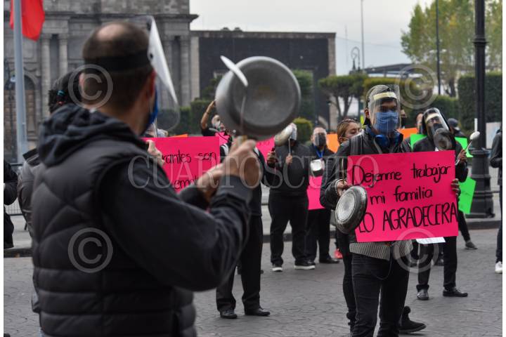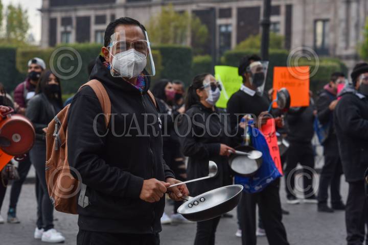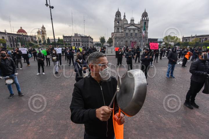 Restauranteros de la Capital, se manifestaron en las inmediaciones del Palacio Nacional, para exigir con un "Cacerolazo", la apertura de restaurantes y bares