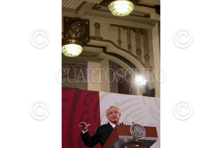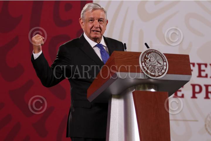 Andrés Manuel López Obrador durante la conferencia de prensa donde se expusieron los resultado del sorte del avión presidencial.