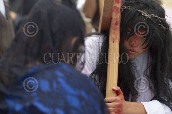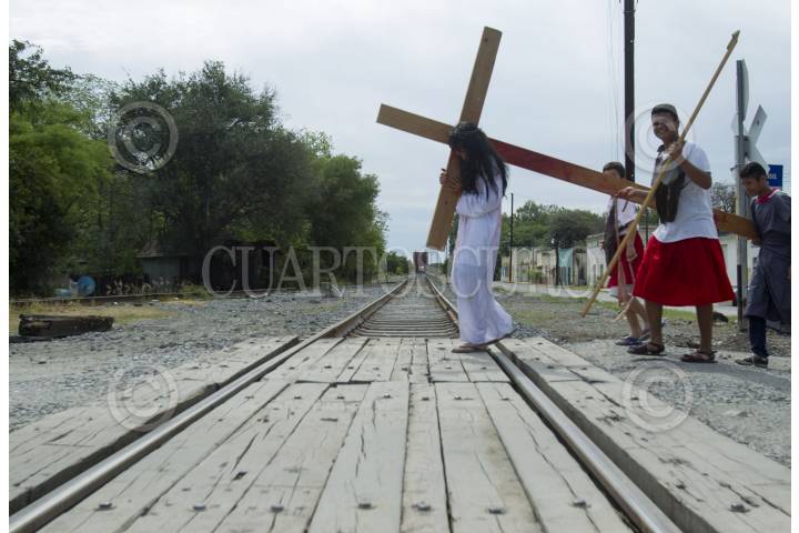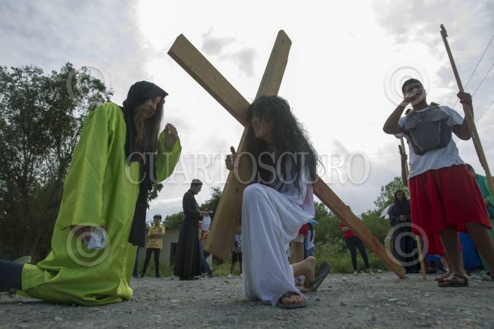 CADEREYTA JIMÉNEZ, NUEVO LEÓN, 30MARZO2018.- Fieles católicos de la comunidad de San Juan realizan el viacrusis por las calles principales del poblado. FOTO: GABRIELA PÉREZ MONTIEL /CUARTOSCURO.COM