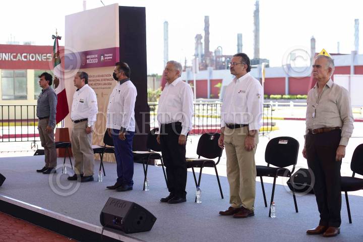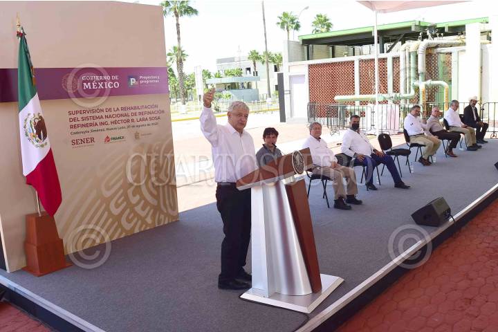 El Presidente Andrés Manuel López Obrador durante la supervisión de rehabilitación de la refinería de Cadereyta.