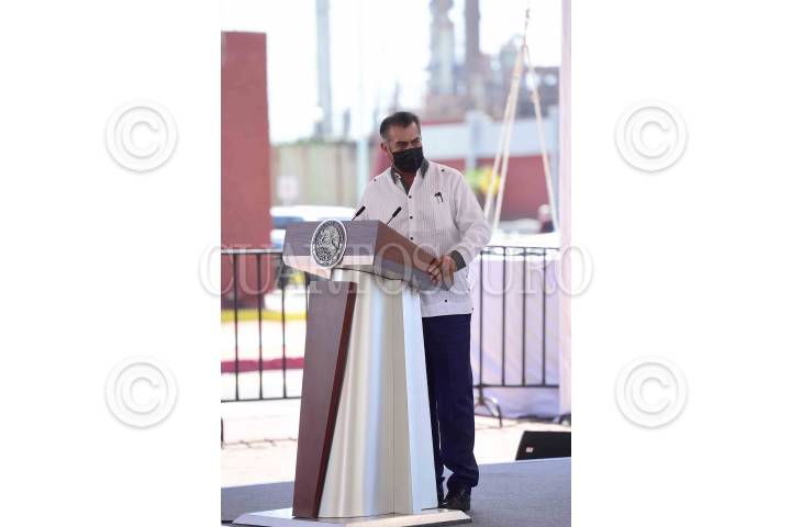 Octavio Romero Oropeza, director de Pemex, durante el anunció de rehabilitación de la refinería de Cadereyta.