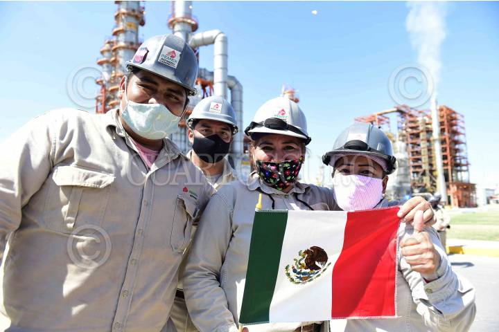 Trabajadores de Pemex en la refinería de Cadereyta, la cual seré rehabilitada, así lo anunció el Ejecutivo.