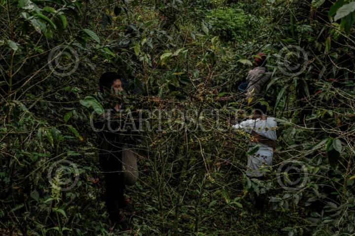 ALDAMA, CHIAPAS, 16FEBRERO2025.- El territorio de Los Altos de Chiapas se ha convertido en un punto reconocido en el mundo del café de especialidad a nivel internacional, por la calidad de sus granos y resultados en taza. En el camino diferentes familias de la región se han beneficiado en conocimiento y economía a partir del buen trato de la tierra y la fruta cosechada de las plantas del café. Hoy en día no solo tienen la opción de vender su café a precios bajos a los llamados coyotes, que son quienes con transporte sacan los granos de las comunidades y los venden a la industria del café comercial. Hoy en día diferentes formas comunitarias de aprendizaje y producción, dan grandes posibilidades a los caficultores de vender por arriba de un 30?l valor que dictamina la bolsa internacional del denominado oro verde a un comercio de alta calidad a nivel estatal, nacional e internacional; como una apuesta en contra el sistema de la industria alimentaria que desfavorece a quien trabaja, vive y cuida la tierra y los alimentos antes de que lleguen a las mesas de los consumidores. La especialización e intercambio de conocimientos entre productores y vendedores ha permitido una mejora en las cosechas año con año en diferentes proyectos desarrollados en territorio chiapaneco. FOTO: ISABEL MATEOS/CUARTOSCURO.COM