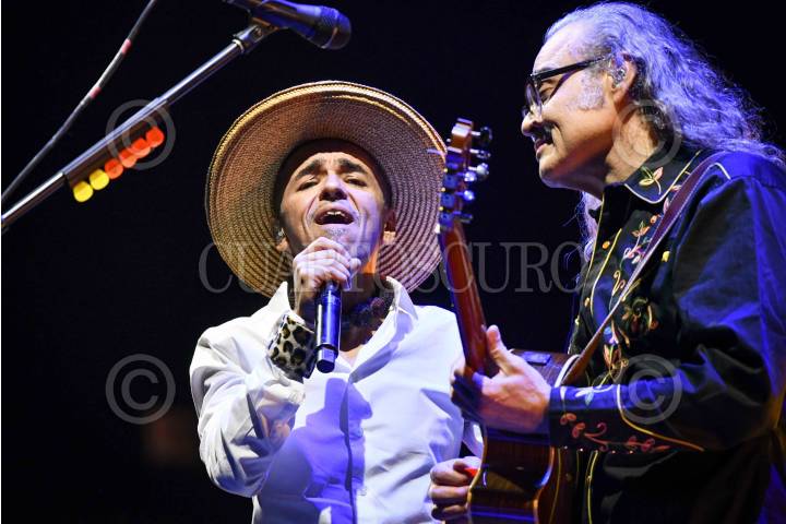 CIUDAD DE MÉXICO, 05DICIEMBRE2024.- Café Tacvba, banda mexicana de rock alternativo, durante su presentación está noche en el Estadio GNP Seguros como parte de su gira en conmemoración de sus 35 años de trayectoria. En la imagen: Rubén Albarrán y Joselo Rangel. FOTO: MARIO JASSO/CUARTOSCURO.COM