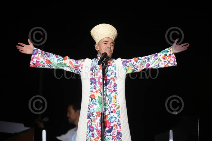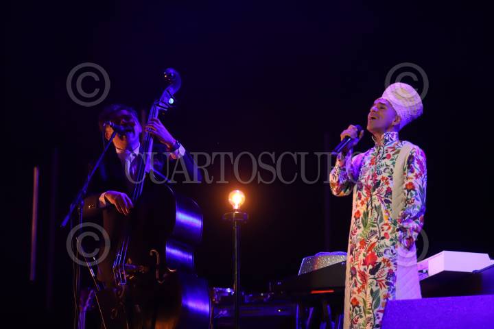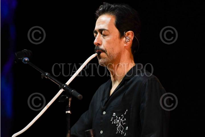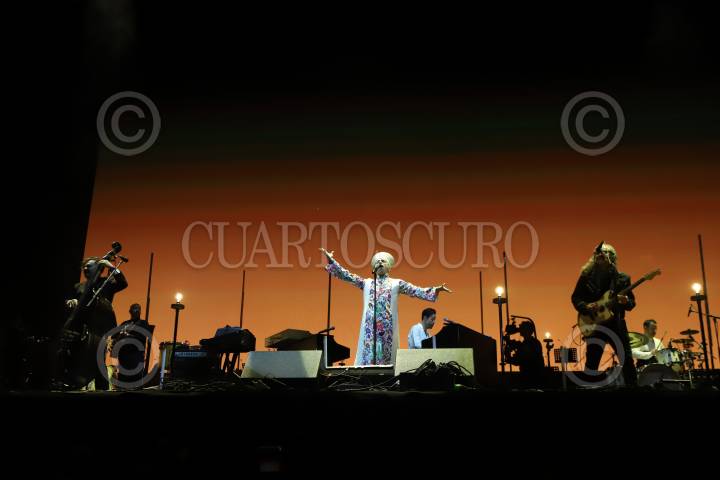 CIUDAD DE MÉXICO, 05DICIEMBRE2024.- Café Tacvba, banda mexicana de rock alternativo, durante su presentación está noche en el Estadio GNP Seguros como parte de su gira en conmemoración de sus 35 años de trayectoria. En la imagen, Emmanuel del Real, tecladista de la banda. FOTO: MARIO JASSO/CUARTOSCURO.COM