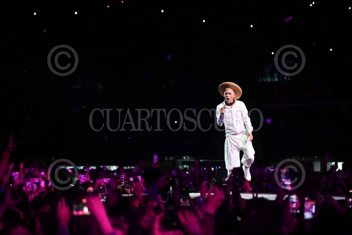 CIUDAD DE MÉXICO, 05DICIEMBRE2024.- Café Tacvba, banda mexicana de rock alternativo, durante su presentación está noche en el Estadio GNP Seguros como parte de su gira en conmemoración de sus 35 años de trayectoria. En la imagen, Rubén Albarrán, cantautor de la banda. FOTO: MARIO JASSO/CUARTOSCURO.COM
