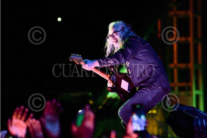 CIUDAD DE MÉXICO, 05DICIEMBRE2024.- Café Tacvba, banda mexicana de rock alternativo, durante su presentación está noche en el Estadio GNP Seguros como parte de su gira en conmemoración de sus 35 años de trayectoria. En la imagen, Joselo Rangel, guitarrista de la banda. FOTO: MARIO JASSO/CUARTOSCURO.COM