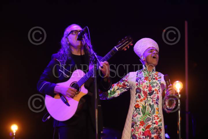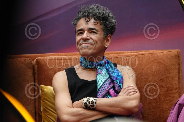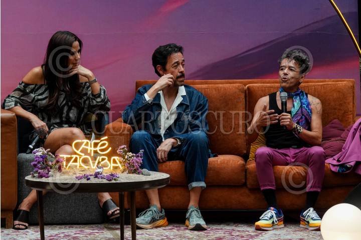 HUIMILPAN, QUERÉTARO, 06SEPTIEMBRE2025.- Los cantantes Josélo Rangel de la banda Café Tacvba Y Cha de Fobia conversaron en la Plaza Cívica del municipio de Huimilpan durante la edición 10 del Hay Festival Querétaro 2025. FOTO: CÉSAR GÓMEZ/CUARTOSCURO.COM