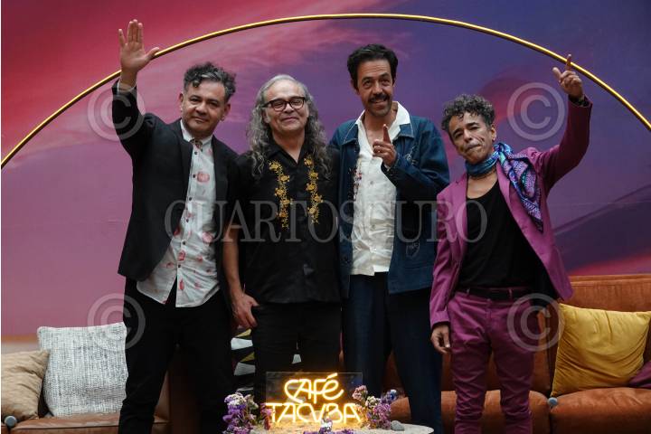CIUDAD DE MÉXICO, 22MAYO2024.- La banda mexicana de rock Café Tacvba conformada por: Enrique Rangel Arroyo, José Alfredo Rangel Arroyo, Emmanuel del Real y Rubén Albarrán durante la conferencia de prensa y presentación del nuevo material La Bas(e). FOTO: GALO CAÑAS/CUARTOSCURO.COM