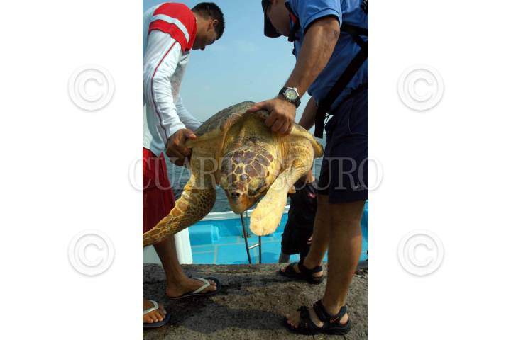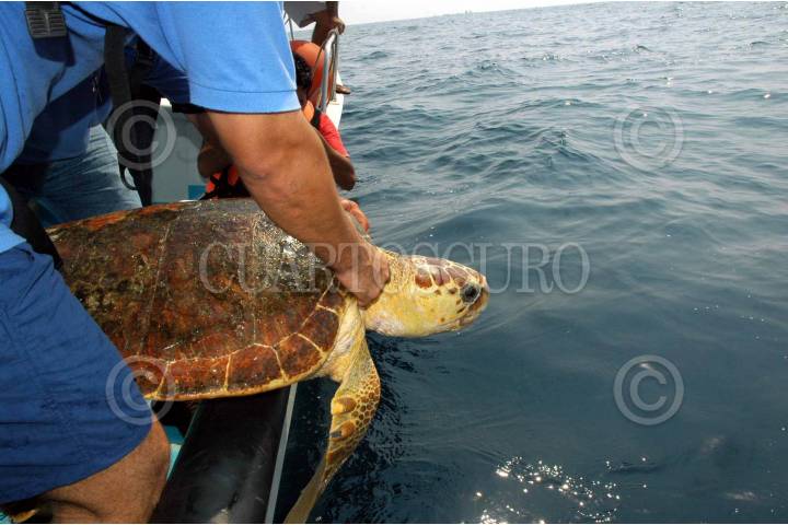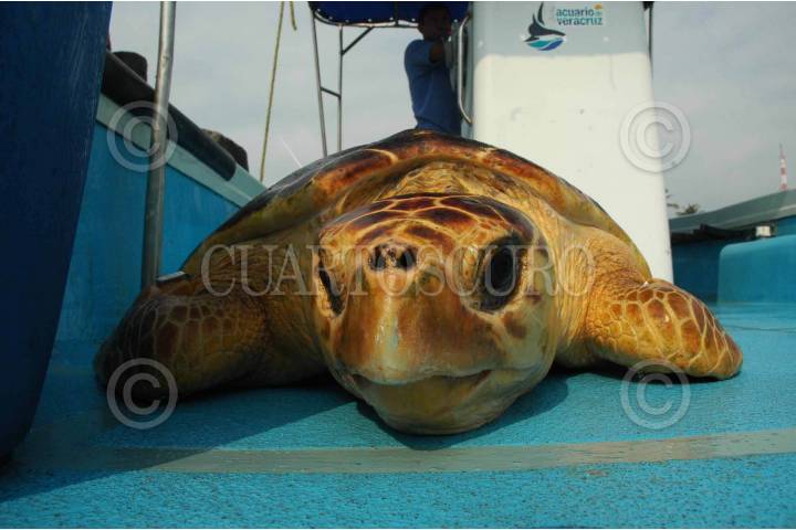 VERACRUZ, VERACRUZ 04MAYO2006.- Despues de haber sido rescatadas y permanecer cinco meses en cautiverio dentro de las Instalaciones del acuario de Veracruz, esta mañana fueron devueltas al mar dos tortugas de la especie Caguama. FOTO: Isaac Aguilar/CUARTOSCURO.COM