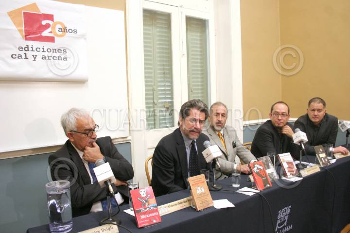 México D.F., a 10 de Septiembre de 2008.- Gilberto Guevara Niebla, Rafael Pérez Gay, Alejandro Usigli, Andrés Ramírez y Héctor de Mauleón, en la conferencia de prensa para anunciar una alianza editorial entre Radom House Mondadori y Cal y Arena, el interés es hacer ediciones de libros de bolsillo, este evento se realizo en la Casa Lamm. FOTO: VICTORIA VALTIERRA/CUARTOSCURO.COM