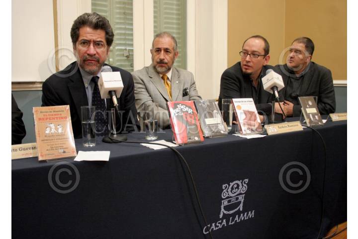 México D.F., a 10 de Septiembre de 2008.- Rafael Pérez Gay, Alejandro Usigli, Andrés Ramírez y Héctor de Mauleón, en la conferencia de prensa para anunciar una alianza editorial entre Radom House Mondadori y Cal y Arena, el interés es hacer ediciones de libros de bolsillo, este evento se realizo en la Casa Lamm. FOTO: VICTORIA VALTIERRA/CUARTOSCURO.COM