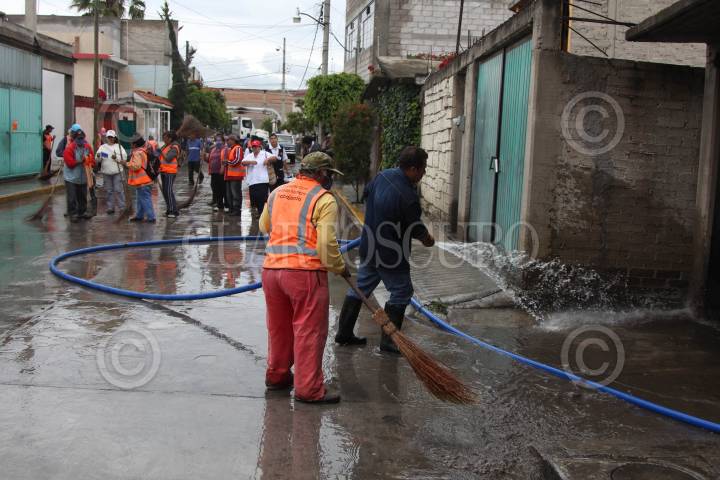 XTAPALUCA, ESTADO DE MEXICO, 25JUNIO2014.-Limpian calles y domicilios afectados por la inundación del día de ayer en las colonias Alfredo de Mazo, Santa Barbara y 20 de Noviembre. FOTO: SAÚL LÓPEZ /CUARTOSCURO.COM
