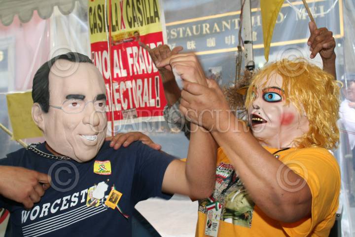MÉXICO, D.F. 2SEPTIEMBRE2006.- En los campamentos ubicados en la calle de Madero, se lleva a cabo una parodia de Elba Esther Gordillo y Felipe Calderón. Máscaras de diversos personajes de la clase política pueden verse a lo largo de las calles del centro y Paseo de la Reforma. FOTO: Paola Hidalgo/CUARTOSCURO.COM