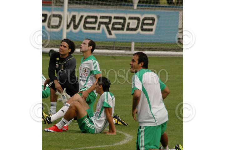 MÉXICO, D.F., 03JUNIO2009.- Los seleccionados Guillermo Ochoa, Gerardo Torrado y Cuauhtemoc Blanco durante el entrenamiento de la Selección Nacional de Futbol que se realizo en el Centro de Alto Rendimiento en el cual estuvo presente el presidente Felipe Calderón. FOTO: RODOLFO ANGULO/CUARTOSCURO.COM