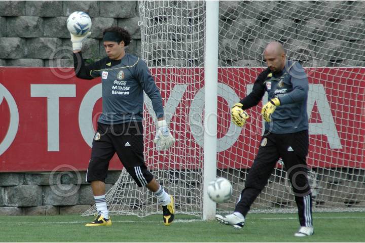 MÉXICO, D.F., 03JUNIO2009.- Los porteros Guillermo Ochoa y Oscar Perez durante el entrenamiento de la Selección Mexicana de Futbol que se realizo en el Centro de Alto Rendimiento en el cual estuvo presente el presidente Felipe Calderón. FOTO: RODOLFO ANGULO/CUARTOSCURO.COM