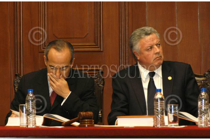MÉXICO, D.F. 15DICIEMBRE2006.- Felipe Calderón Hinojosa, presidente de México, acudió junto con Jorge Zermeño Infante, presidente de la mesa directiva de la Cámara de Diputados, a la Suprema Corte de Justicia de la Nación (SCJN) a escuchar el informe de actividades del presidente de la SCJN. FOTO: IVÁN STEPHENS/CUARTOSCURO.COM