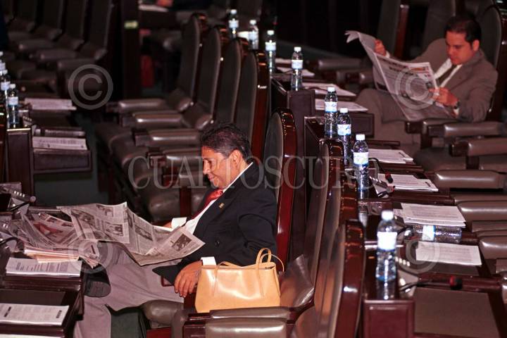 Diputados panistas se mantienen informados, durante la sesión ordinaria en la Cámara Baja. FOTO: Oswaldo Ramírez/CUARTOSCURO.COM