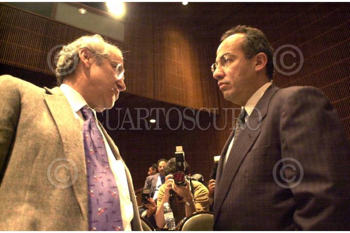 Los diputados Cuauhtémoc Cardona, integrante de la Sección Instructora y Felipe Calderón Hinojosa, coordinador de la fracción panista en la Cámara Baja, durante la sesión ordinaria en la Cámara de Diputados. FOTO: Oswaldo Ramírez/CUARTOSCURO.COM