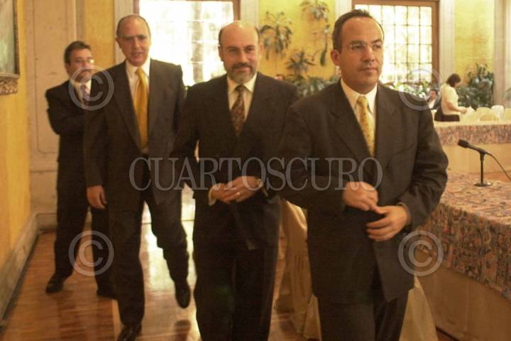 Después de una reunión de trabajo del presidente Vicente Fox con la dirigencia nacional y gobernadores del PAN, Luis Felipe Bravo Mena, el diputado Felipe Calderón Hinojosa y el gobernador de Nuevo León, Fernando Canales Clariond, ofrecierón una conferencia de prensa. FOTO: Oswaldo Ramírez/CUARTOSCURO.COM