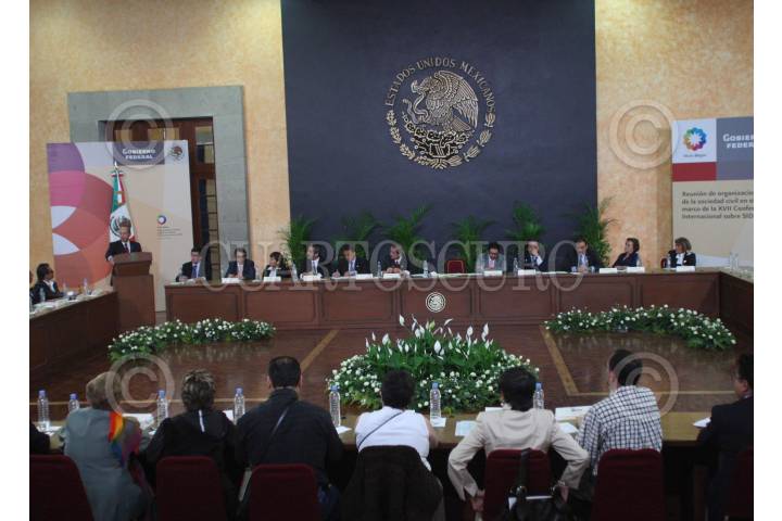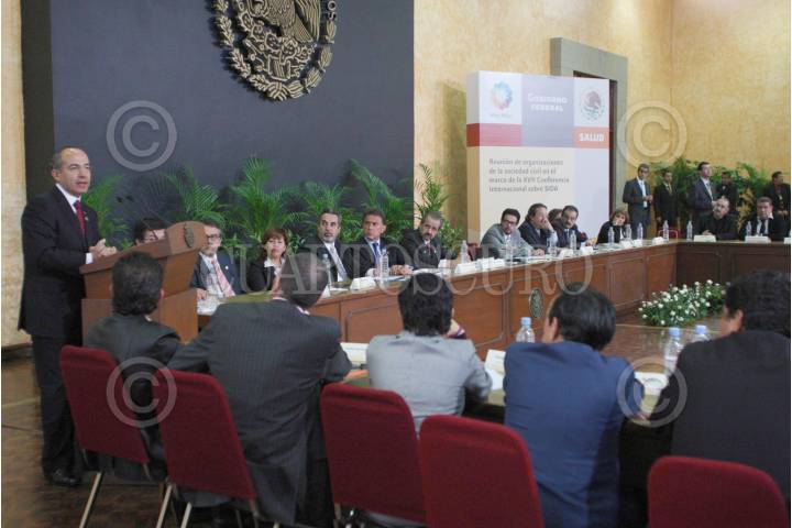MEXICO, D.F., 29JULIO2008.- El Presidente de la Republica, Felipe Calderòn Hinojosa en la conferencia que dio en la mañana con organizaciones civiles en torno al XVII conferencia internacional del Sida. FOTO: ALFREDO GUERRERO/CUARTOSCURO.COM