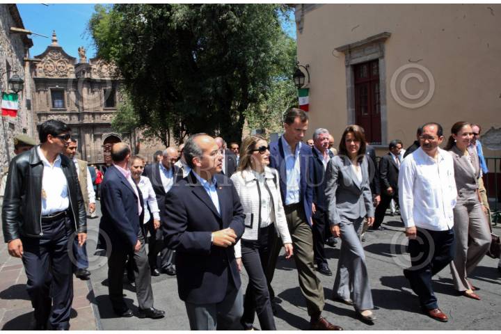 El Presidente de la Republica, Felipe Calderon Hinojosa, acompañado de su esposa, Margarita Zavala y de los príncipes de Asturias, Felipe de Borbon y Leticia Ortiz Rocasolano, duranteel recorrido por la iglesia de las rosas. FOTO: ALFREDO GUERRERO/CUARTOSCURO.COM