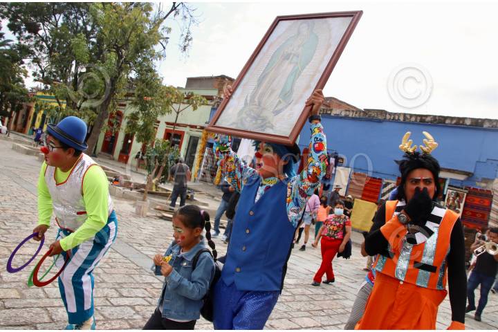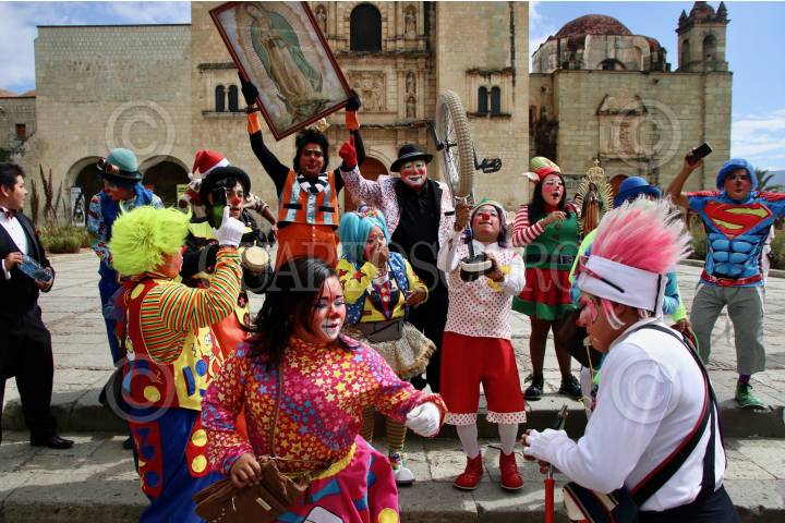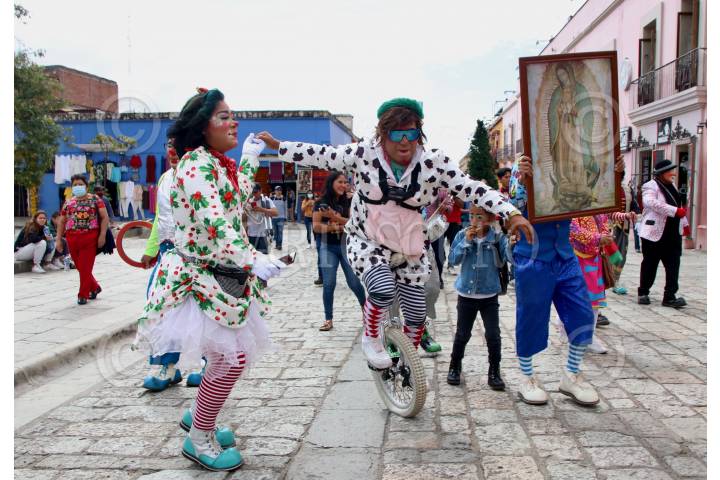 Payasos del estado de Oaxaca realizaron una calenda para visitar y agradecer a la Virgen de Guadalupe y conmemorar el Día Nacional del Payaso (10 de diciembre)
