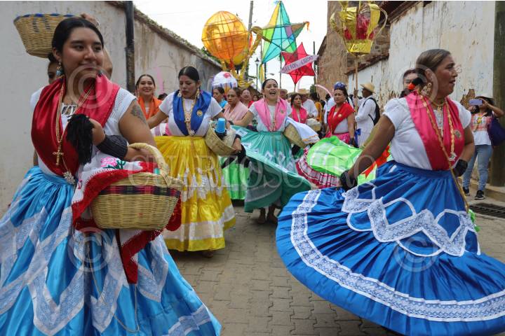 CIUDAD DE MÉXICO, 24AGOSTO2025.- La calenda integrada por los pueblos originarios de Oaxaca avanzó por la Calle de Madero para llegar al Zócalo capitalino. FOTO: DANIEL AUGUSTO / CUARTOSCURO.COM