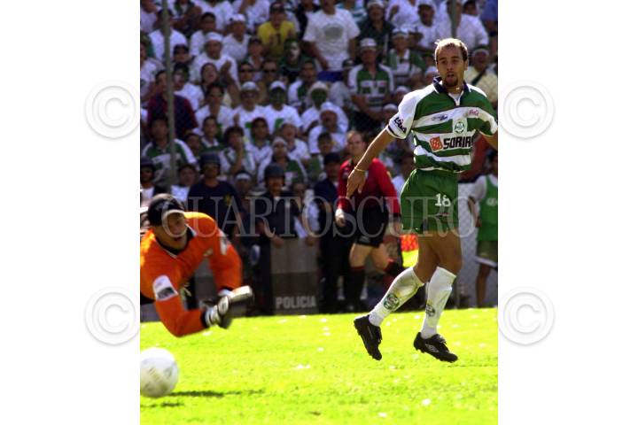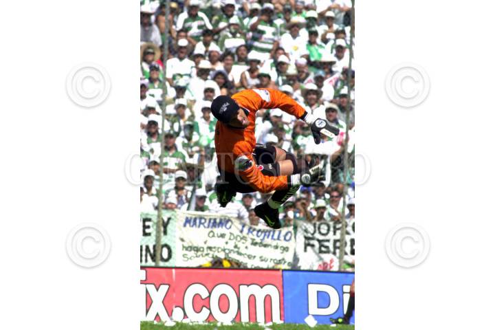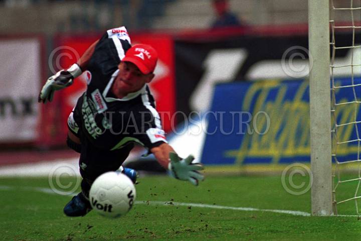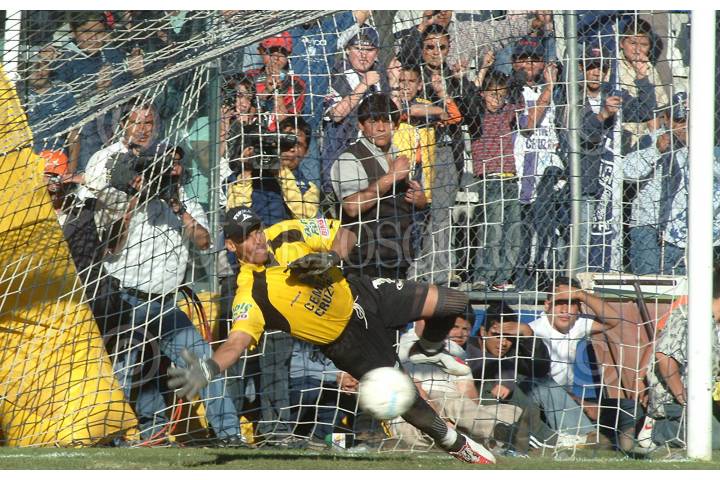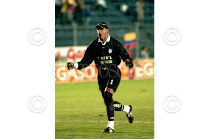 PACHUCA HIDALGO 09ENERO2005.- Miguel Calero, portero de Pachuca, atajó algunos de los tiros que se realizaron en una serie de penales realizados para elegir al vencedor del torneo cuna de futbol. FOTO:Iván Stephens/CUARTOSCURO.COM
