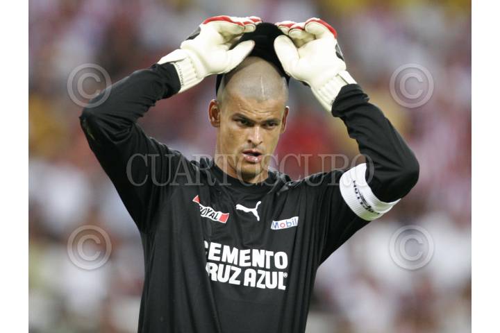 MÉXICO, D.F., 14AGOSTO2010.- Miguel Calero, portero de los Tuzos del Pachuca durante el encuentro en contra de la Maquina Celeste del Cruz Azul en el partido de la jornada 4 del torneo Apertura 2010 que se realizo en el estadio Azul ganando la Maquina Celeste 4 goles por 1. FOTO: RODOLFO ANGULO/CUARTOSCURO.COM