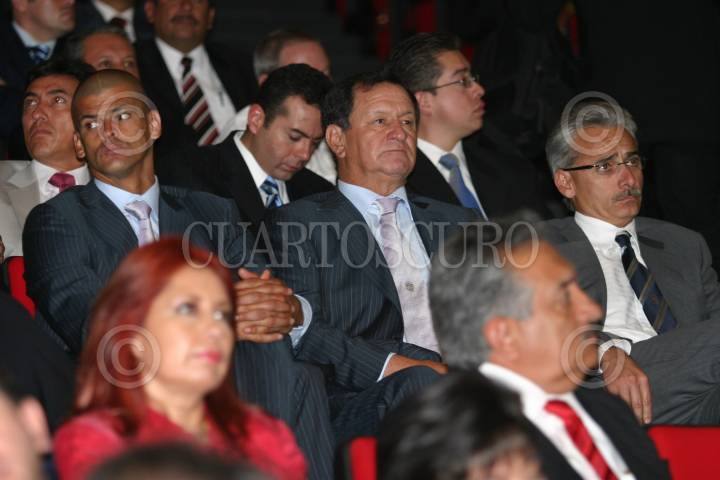 PACHUCA, HIDALGO, 01ABRIL2008.- Miguel Angel Osorio Chong, gobernador de la entidad, rindió su tercer informe de gobierno en el auditorio Gota de la Plata. En la imagen los integrantes del club de fútbol Pachuca, Miguel Calero, Enrique "Ojitos" Meza y Jesús Martínez. FOTO: DAVID MARTÍNEZ PELCASTRE/CUARTOSCURO.COM