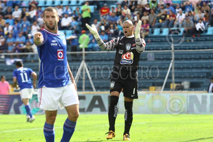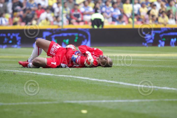 MÉXICO, D.F., 08FEBRERO2009.- El portero Miguel Calero, capitán de su cuadro, se queja despúes de un golpe que recibió durante el encuentro con las águilas del América FOTO: SÁSHENKA GUTIÉRREZ/CUARTOSCURO.COM
