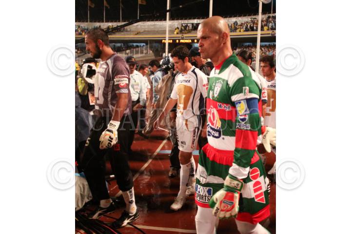 MÉXICO, D.F., 28MAYO2009.- El portero de los pumas Sergio Bernal y el portero de los Tuzos, Miguel Calero, al inicio del partido de ida de la final del torneo de clausura 2009. FOTO: RODOLFO ANGULO/CUARTOSCURO.COM