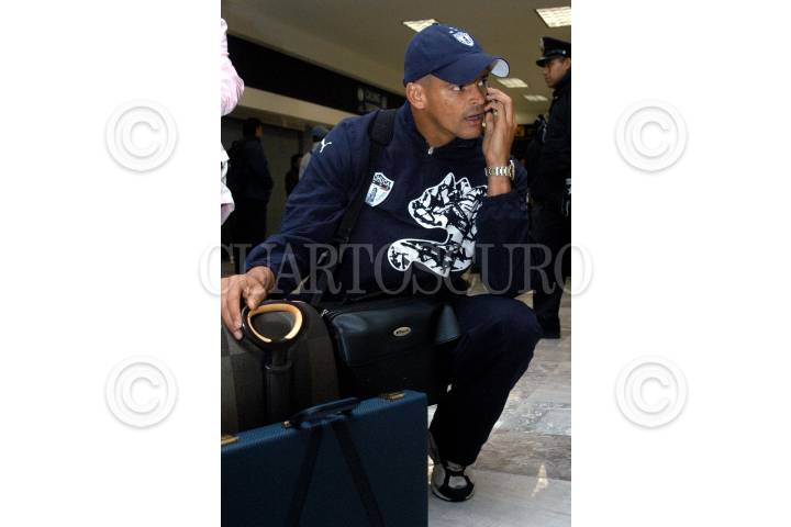 MÉXICO D.F. 15DICIEMBRE2006.- Miguel Calero de los Tuzos del Pachuca a su llegada al aereopuerto Internacional Benito Júarez, de Santiago de Chile donde se coronaron campeones de la Copa Sudamericana 2006. FOTO: GUILLLERMO PEREA /CUARTOSCURO.COM