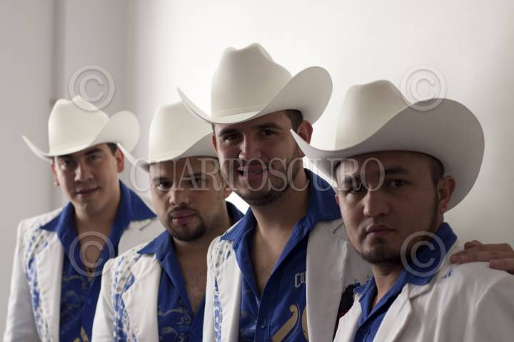 MÉXICO, D.F., 29FEBRERO2012.- Armando Ramos, Martín López, Edén Muñoz, vocal, y Augusto Guido, integrantes de la agrupación musical Calibre 50, quien presentó su nuevo disco El Buen Ejemplo bajo el sello de Universal Music. FOTO: MOISÉS PABLO /CUARTOSCURO.COM