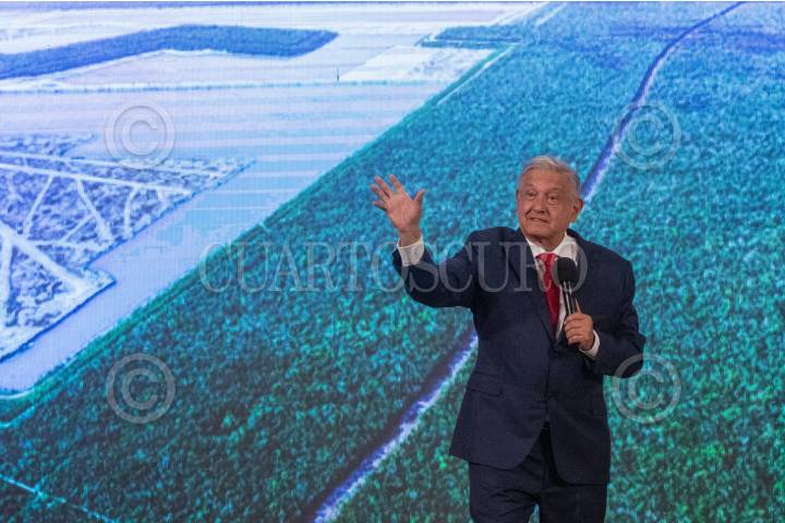 CIUDAD DE MÉXICO, 06NOVIEMBRE2023.- Andrés Manuel López Obrador, Presidente de México, señaló que el gobierno ha lanzado una oferta económica por los terrenos donde se encuentra la mina Calica Sac-Tun de la empresa Vulcan Materials Company de origen estadounidense, negando que se vayan expropiar sus terrenos ubicados en Playa del Carmen. FOTO: MOISÉS PABLO/CUARTOSCURO.COM
