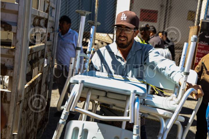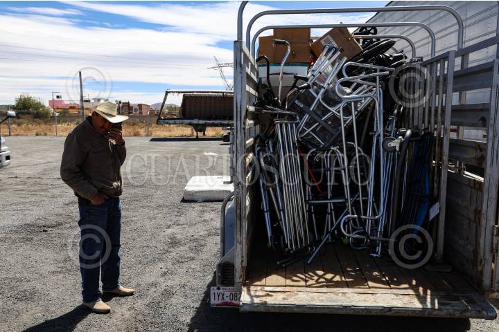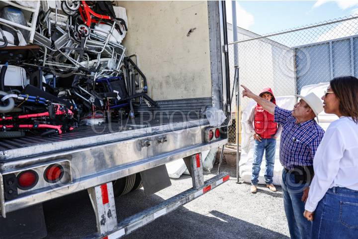 MORELOS, ZACATECAS, 07MARZO2025.- Un tráiler arribó la mañana de este viernes desde California, Estados Unidos; con equipo médico donado y coordinado por los Clubes adheridos a la “Federación de Clubes Zacatecanos del Sur de California”. La primera parada fue en el municipio de Morelos, en donde se entregó a comisiones de pobladores del municipio, ademas otro tanto al municipio de Fresnillo y otro mas a la comunidad de Ermita de los Correa, de Jerez. La actividad de solidaridad y apoyo de migrantes zacatecanos a sus comunidades originarias fue organizada por el vicepresidente, Guadalupe “Lupe El Bueno” Rodríguez, coordinador del programa, establecido durante la pandemia para dotar de sillas de ruedas, andaderas, muletas y camas para hospitales a municipios que están representados por los clubes de la federación. Después de la primer parada, el tráiler migrante continuará entregando durante este día otro tanto de aparatos y equipo médico en los municipios de Jalpa, Juchipila y Moyahua. FOTO: ADOLFO VLADIMIR /CUARTOSCURO.COM