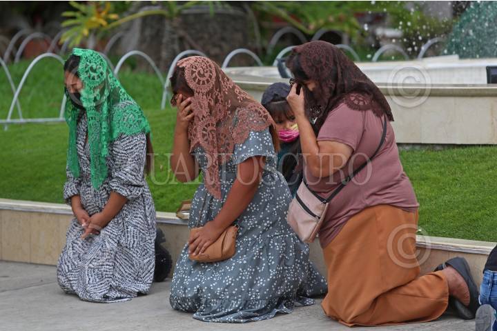 Personas de la religión de la Luz del Mundo, realizan oraciones por su líder espiritual, Naasón Joaquín García, quien fue declarado culpable por abuso infantil.