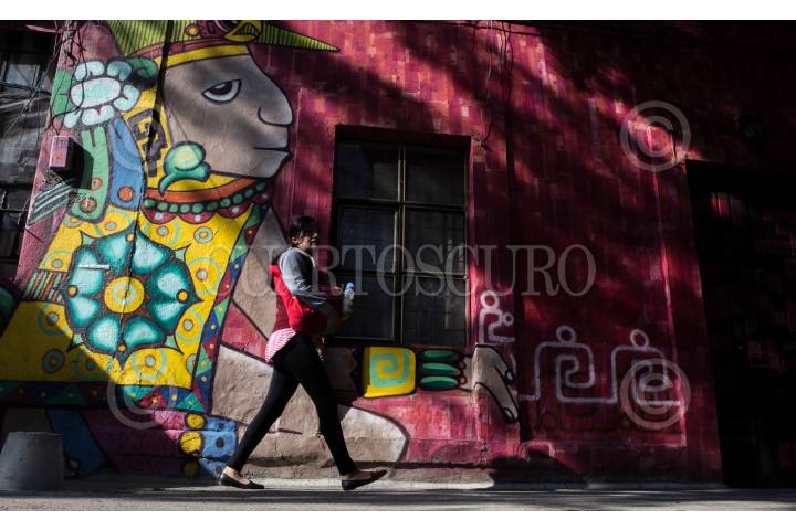 CIUDAD DE MÉXICO, 30JULIO2018.- Transeúntes interactúan diariamente con las obras de distintos muralistas y graffiteros en la capital del país. FOTO: TERCERO DÍAZ /CUARTOSCURO.COM
