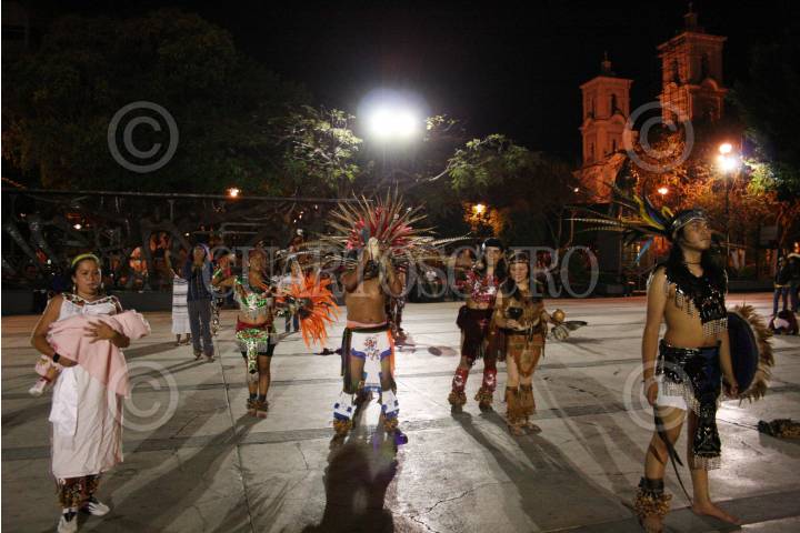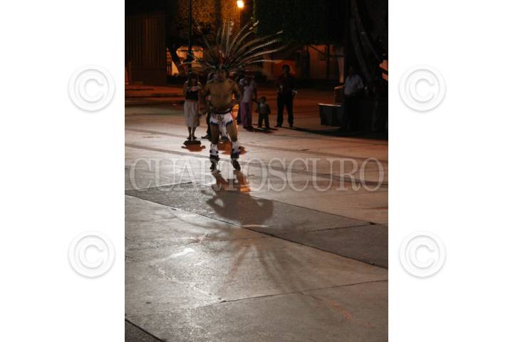 CHILPANCINGO, GUERRERO, 13MARZO2009.- Celebración del inicio del Año Nuevo Mexica 10 Calli (diez casa) que llevaron a cabo la noche del miércoles integrantes de la organización indígena "Calpulli Tecuanichan" y del grupo de danza "Halcon Rojo" en el zócalo de la ciudad capital. FOTO: OSCAR ALVARADO/CUARTOSCURO.COM