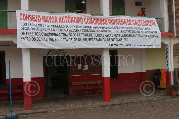 URUAPAN, MICHOACÁN. 21FEBRERO2014.- En aras de retomar su antigua forma de organización, además de recuperar la fortaleza del trabajo comunitario y defender su territorio, suelo, integridad y recursos naturales, la comunidad indígena de Caltzontzin conformó un Consejo Mayor Autónomo, además de integrar el grupo de Defensa Indígena Autónoma (DIA). Lo anterior fue presentado en el marco del aniversario 71 por el nacimiento del volcán Paricutín, cuya erupción dio origen a la conformación de la comunidad de Caltzontzin, luego de que su antiguo pueblo, San Salvador Combutizo, quedara muy cerca de la lava y sus habitantes corrieran peligro. FOTO: JUAN JOSÉ ESTRADA SERAFÍN /CUARTOSCURO.COM