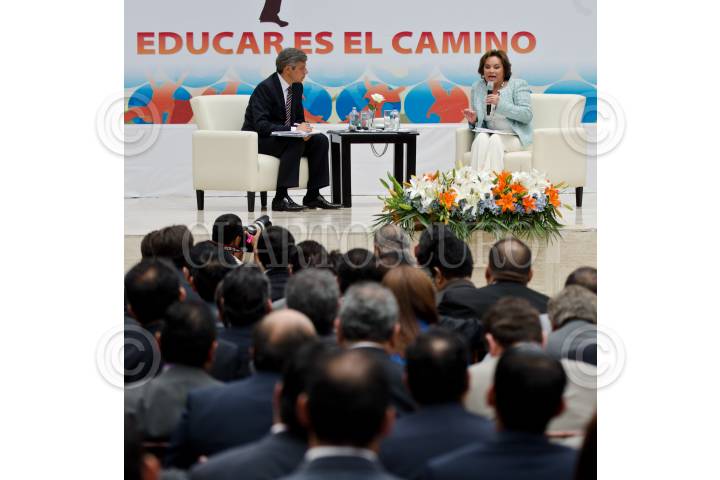MÉXICO, D.F., 22JUNIO2011.- Claudio X. Gonzalez, presidente de la Asociación Mexicanos Primero y Elba Esther Gordillo, líder del Sindicato Nacional de Trabajadores de la Educación (SNTE) durante el 5to Congreso Nacional de Educación. FOTO: MISAEL VALTIERRA/CUARTOSCURO.COM