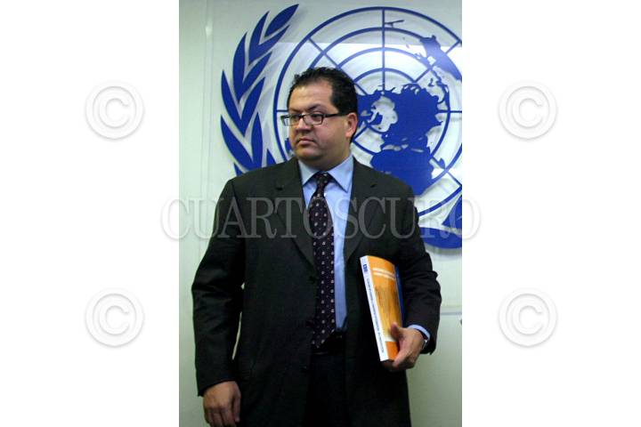 MÉXICO D.F. 14JUNIO2006.- Luis Felipe López Calva, director de la Oficina del Informe Sobre Desarrollo Humano (PNUD México) realizo la preseantación del libro Indicadores de Desarrollo Humano y Genero en México, en la instalaciones de la ONU en México. FOTO: Guillermo Perea/CUARTOSCURO.COM
