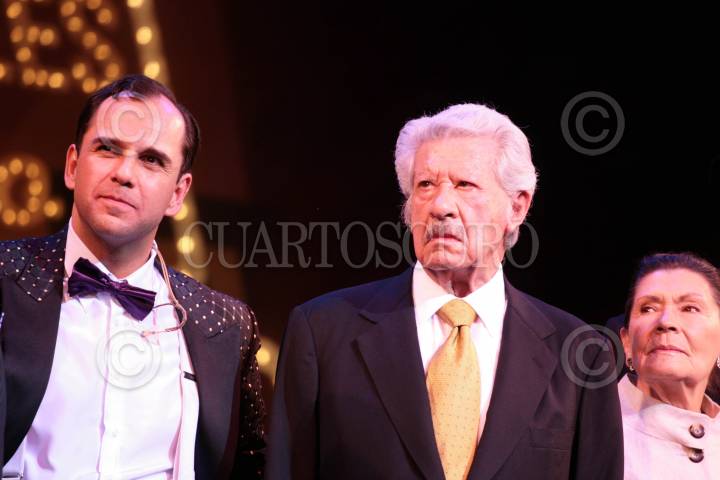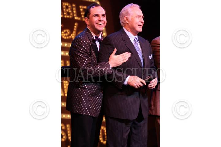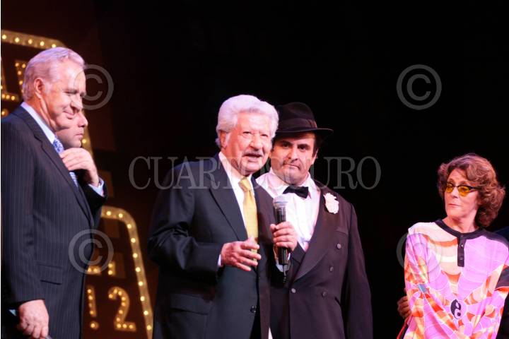 MÉXICO, D.F.19ABRIL2007.-Los actores Ignacio López Tarso, Ana Ofelia Murguia, Rogelio Guerra y Julieta Egurrola fungieron como padrinos de Alejandro Calva e Ivan Carza, durante la función especial del musical "Los Productores". FOTO JEFTÉ ARGUELLO/CUARTOSCURO.COM