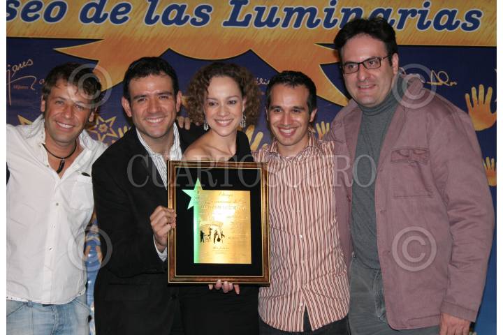 MÉXICO, D.F., 27JULIO2007.- Los actores Juan Manuel Bernal, Héctor Snadarti, Natalia Sosa, Iván Caraza y Alejandro Calva, integrantes del elenco de la obra musical "Los Productores" les entregaron un reconocimiento en Plaza de las Estrella por el exito del montaje. FOTO: IVÁN PEREZCUARTOSCURO.COM
