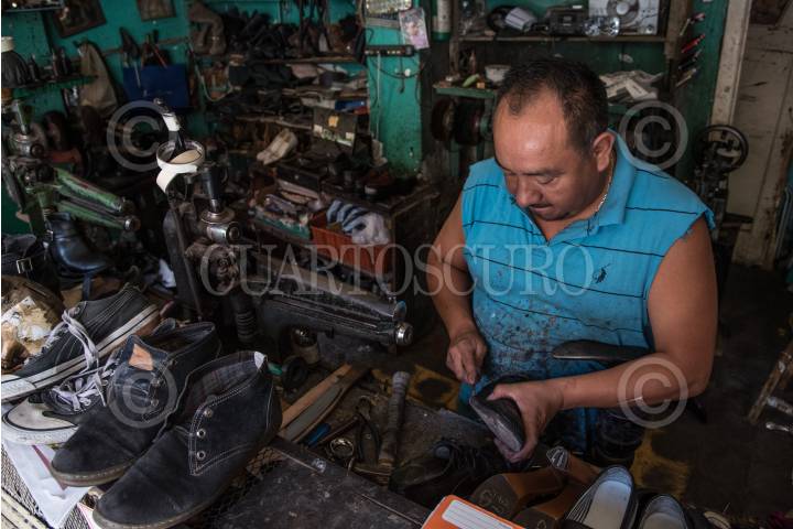 CIUDAD DE MÉXICO, 15JUNIO2017.- Un señor que se dedica a la reparación de calzado y ropa, trabaja en su taller en la zona centro de la ciudad. FOTO: TERCERO DÍAZ /CUARTOSCURO.COM