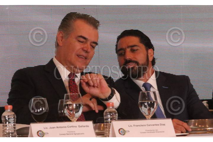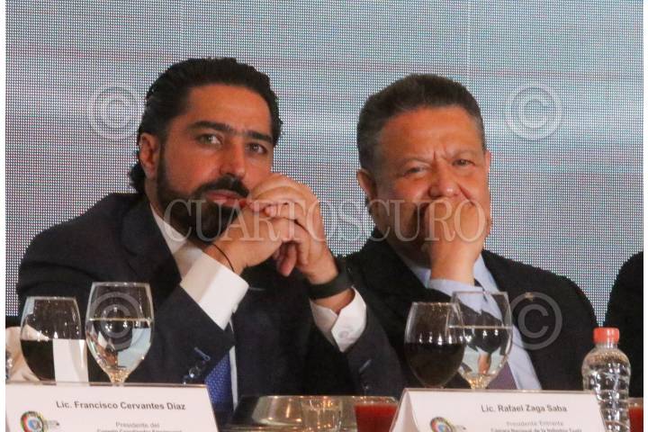 Francisco Cervantes y Rafael Zaga en el VI congreso de la industria textil y del calzado, en la hacienda de los Morales.