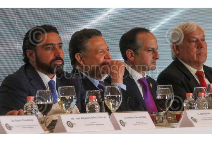 Francisco Cervantes, Rafael Zaga y Julio Menchaca en el VI congreso de la industria textil y del calzado, en la hacienda de los Morales.
