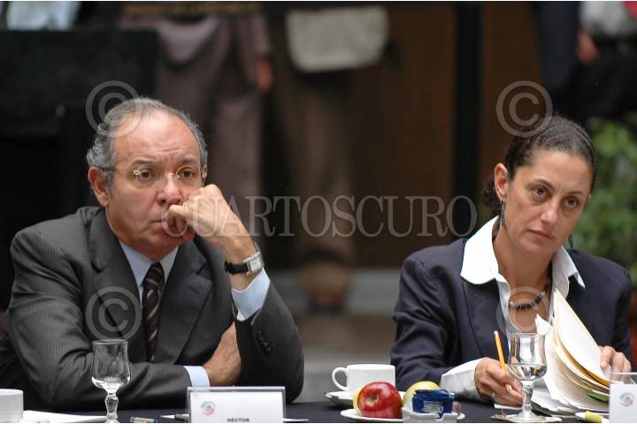MÉXICO, D.F., 15MAYO2008.- Hector Aguilar Camin y Claudia Scheinbaum, como ponentes durante el segundo foro sobre la reforma energética que se realiza en el Senado de la República. FOTO: RODOLFO ANGULO/CUARTOSCURO.COM